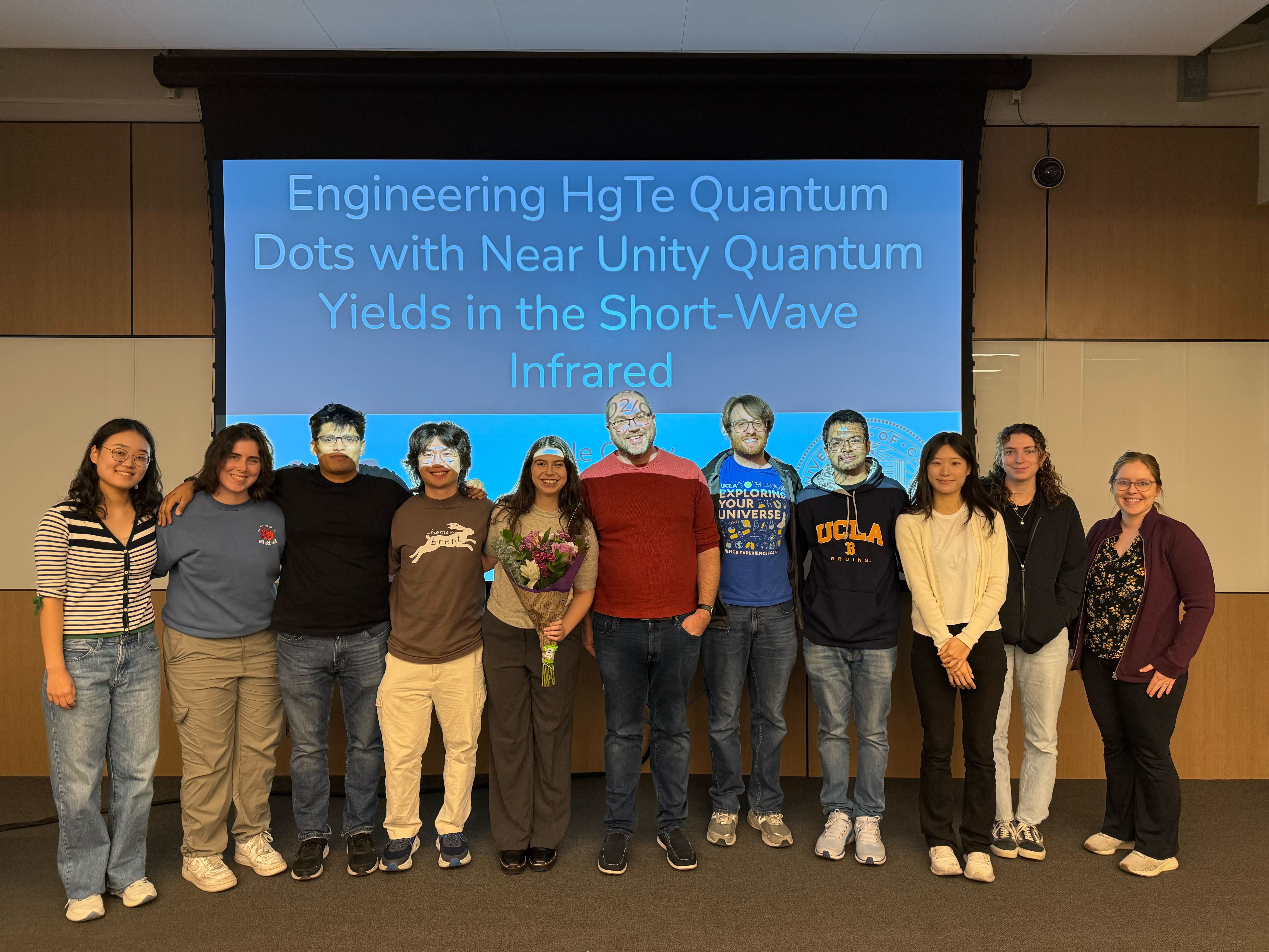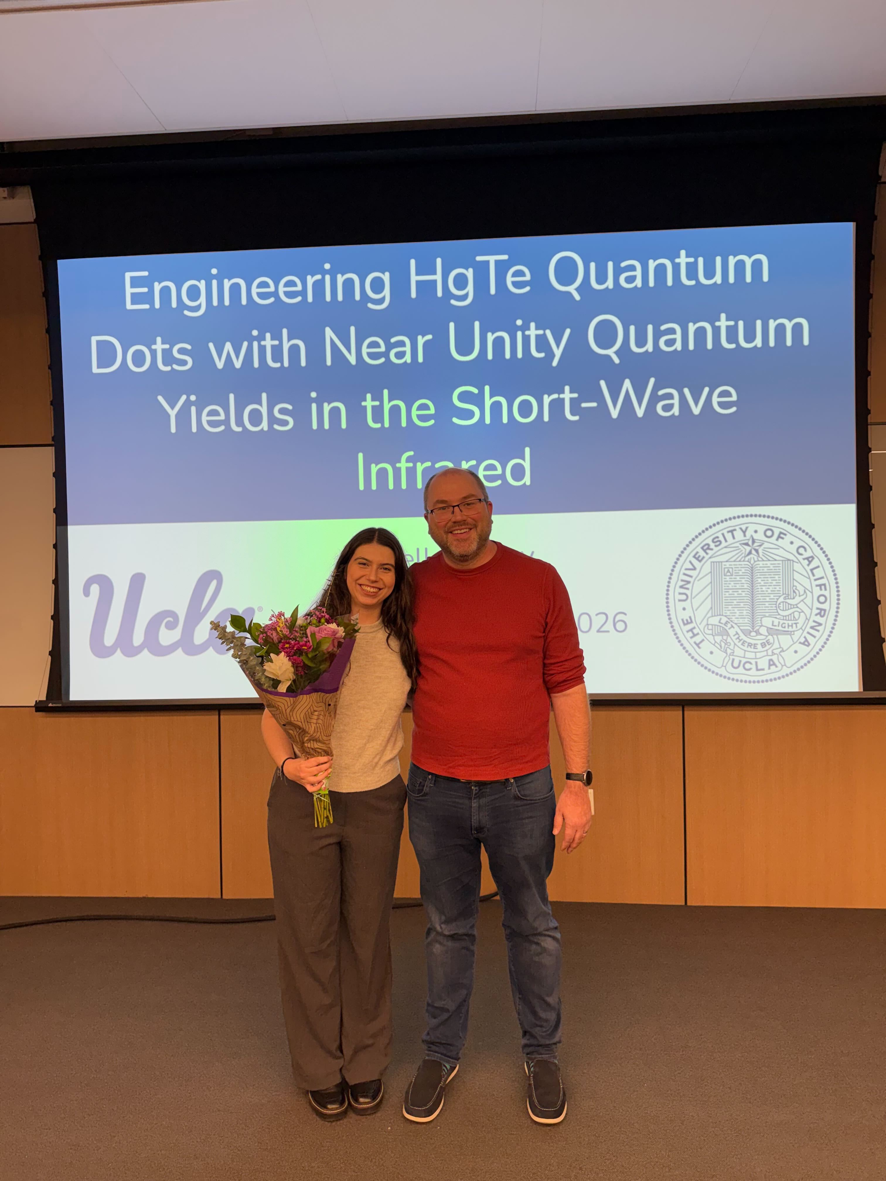 2/5/2026 Congratulations to Belle on her exit seminar: “Engineering Mercury Telluride Quantum Dots with Near Unity Quantum Yields throughout the Short-Wave Infrared”!